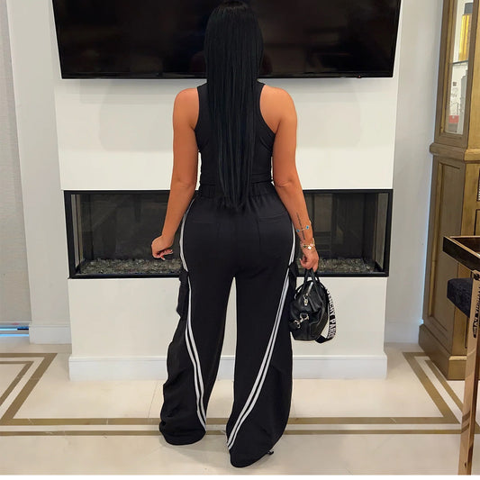 Ins Letter Sports Suit Zip-up Hooded Cropped Sweatshirt Top And Loose Drawstring Trousers Fashion Womens Clothing